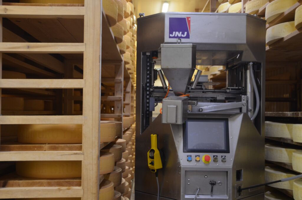 L’employé de l’année, c’est ce grand robot gris chargé de saler, frotter, retourner et aligner les meules de gruyère. Il s’en occupe durant cinq à 18 mois, selon la durée de l’affinage. « On peut lui dire exactement ce qu’on veut qu’il fasse », précise Fabrice, qui mentionne encore le prix: 350’000 francs suisses.