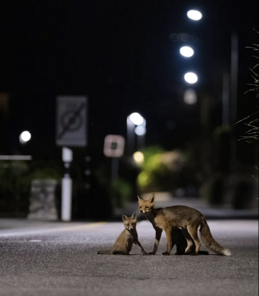 Mais de tous ces sons, le vacarme des voitures se distingue tout particulièrement et plane comme une menace. « Étant pâtissier, je commence tôt le matin. Je fais les trajets à vélo et j’ai remarqué la quantité d’animaux écrasés par des voitures. En cherchant à en comprendre la cause, j’ai réalisé que l’explication résidait dans la forte présence de la faune en milieu urbain, additionnée à l’inattention des humains. Cette grande densité est explicable par la nourriture disponible. Opportunistes, le renard et les blaireaux vont préférer manger du poulet facilement accessible dans un composte, plutôt que de passer des heures à chasser » analyse le photographe.