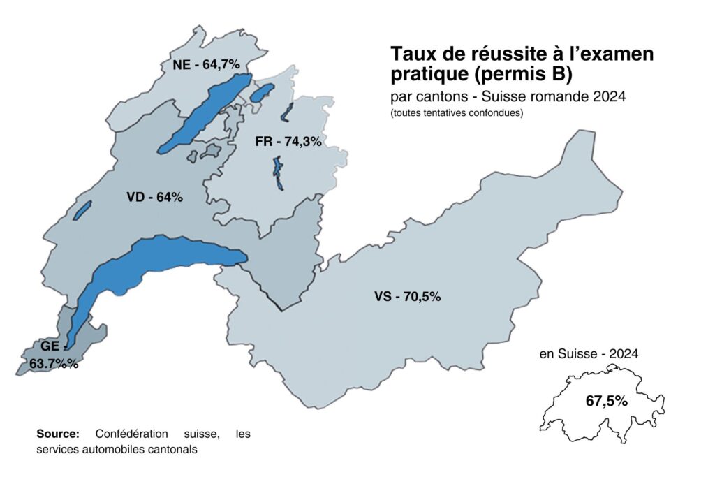 Et cette idée est confirmée par les chiffres. En effet, le taux de réussite à l’examen pratique du permis B est de 64% dans le canton de Vaud contre 74,3% à Fribourg. Une différence de 10,3%, difficile à ignorer. Une analyse révèle des variations similaires dans toute la Suisse romande.